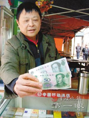 王國華介紹:昨日凌晨3時(shí)許,響水橋一帶只有他的煙攤和不遠(yuǎn)處的一家大排檔還亮著燈,其他攤點(diǎn)早已關(guān)門。趁著顧客少,他坐在煙攤打起盹來,“一個20多歲的小伙子把我叫醒,要買煙。”王國華說,那男子滿臉通紅,一臉酒意,拿出一張50元模樣的紙幣扔在煙柜上,拿起煙柜上的玉溪轉(zhuǎn)身就走,連找補(bǔ)都不要。王國華覺得那男子怪怪的,一摸錢,手感不對,太軟。他立馬站起來拉住那男子衣角,然后仔細(xì)看手中的錢,“哪里是人民幣嘛,根本就是一張冥幣。”