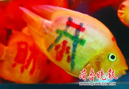 在臨沂部分水族市場內,一些熱帶魚被文上“招財進寶”、“吉祥如意”等字樣,價格也漲上去了。