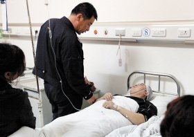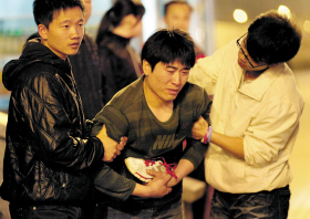 女孩的男友抱著她的鞋,不愿離去 本組圖片 記者 白桄 攝
