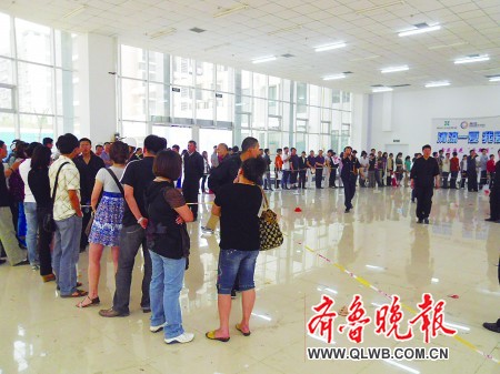 23日上午10時30分左右,記者趕到位于濟南工業南路的鑫苑國際城市花園9號樓一樓會所。會所內,一條警戒線圍成環形,人們在排隊等候,這些人全是該小區的業主。他們中不少人自帶板凳,許多業主通宵排隊,哈欠連連,疲態盡顯。