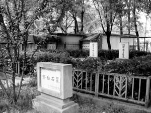 但與文物格格不入的是,緊鄰墓園西側建起了一排簡易房(如圖)。居民透露,“這些都是違法建設,除了一處水果攤位存在多年外,其他小餐館都是去年才建起來的!本用裉锵壬f,違建擋路、破壞環境,“但最不能容忍的是每到晚上,餐館里的人就跑到大師的墓旁小便,簡直是對大師的褻瀆。”田先生憤憤不平。為了求證,記者特意圍著墓園轉了幾圈,在墓園西北和西南兩個靠近違建的角落,記者聞到了濃濃的尿味兒。