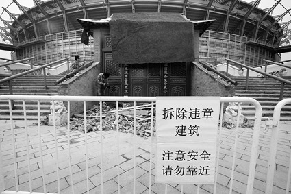 “整體建筑風格跟奧體不符,所以將其拆除!边@名拒絕透露身份的男子對記者說道。