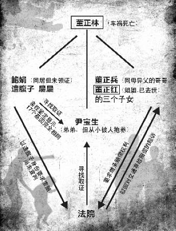我打官司的目的,就是要為這個孩子正名,我不想讓孩子丟臉。”鮑娟昨天在法庭外說。來自安徽的她已是40多歲的年紀,可在與南京人董正林同居后卻很快懷孕。不幸的是,就在她等待愛情的結(jié)晶時,董正林卻在車禍中遇難。董正林同母異父的哥哥卻不承認鮑娟腹中孩子的身份,他們先提起了道路交通事故索賠。而面臨絕境的鮑娟卻突然得知,董正林有個親生弟弟雖然早已被抱養(yǎng)改名換姓,卻仍然在附近生活。董的遺體已經(jīng)火化,在科學上,這是唯一能證明孩子身份的關鍵人物,于是她和法院一起展開了尋找……