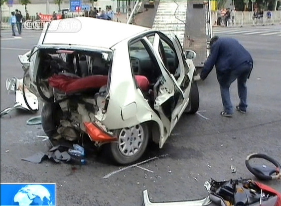 5時35分,“英菲尼迪”由北向南行至朝陽區建國門外大街永安里路口時,將正等待紅綠燈的菲亞特轎車撞出路口,致其又與一輛轉彎的公交車相撞,造成“菲亞特”車內一家3口兩死一傷。