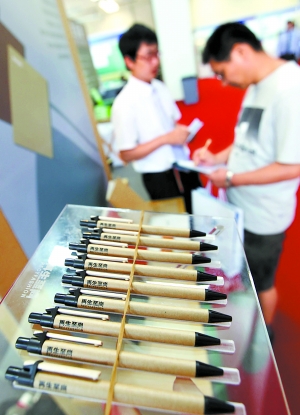 剛剛閉幕的北京節能環保展上,用回收材料制作的再生文具頗受追捧。