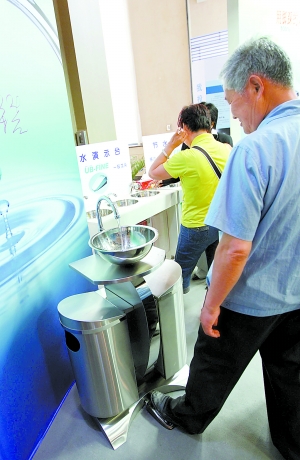 比感應式更節水的腳踏式水龍頭引來不少觀展市民試用。