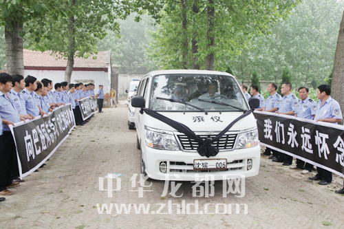 當(dāng)日9時許,追悼會開始,沈丘縣殯儀館大廳哀樂低旋,莊嚴(yán)肅穆,氣氛凝重,挽聯(lián)低垂,全體人員集體肅立、默哀。“廿五年從警生涯,以正氣憾天地;五十載不悔歷程將身心獻(xiàn)人民”。靈堂前兩幅巨大的挽聯(lián)映襯出楷模的敬業(yè)與執(zhí)著;哀樂聲聲,訴說著人們無盡的悲痛與思念。儀式結(jié)束后,長長的人群眼含熱淚,一一來到巴進(jìn)同志的遺體前見他最后一面,送他最后一程。