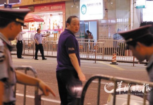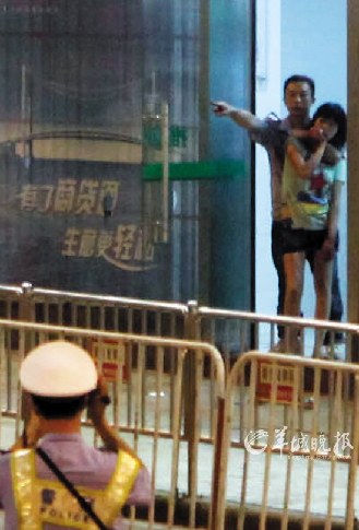 廣州越秀警方昨晚通報,昨晚8時許,湖北籍男子謝某(男,38歲)在越秀區(qū)站南路持剪刀搶劫一名男性路人后遭到警方追捕。在逃至站前路某自助銀行門口時,被民警和群眾包圍,又持剪刀劫持了一名女路人。警方迅速調(diào)集特警、刑警、便衣民警等警力將其團團包圍,并派出談判專家對其進行政策攻心,但均未奏效。亢奮失控的歹徒不斷持剪刀捅傷女事主致多處出血。