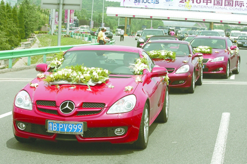“一共是40多輛迎親車,有保時捷911、奔馳SLK350、寶馬Z4等等,這些都是敞篷的,還有奧迪Q7、保時捷卡宴等,每輛車價值都在百萬左右!睋檎叻Q,婚車聯盟提供了此次婚車的租賃,一天的租金在8萬到10萬元之間,而所有婚車總價值加起來,怎么也超過3000萬元了。