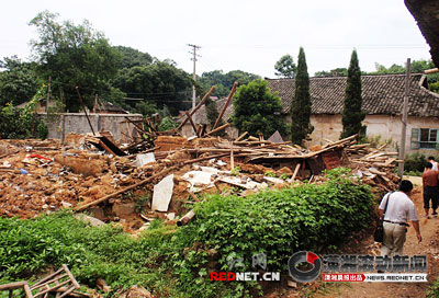湘潭縣石潭鎮被洪水完全沖垮的一棟房屋。李志宏攝