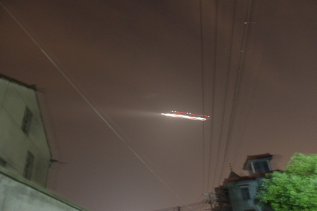 讀者小繆于2007年8月28日晚拍下的蕭山機場飛機起飛照片。