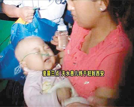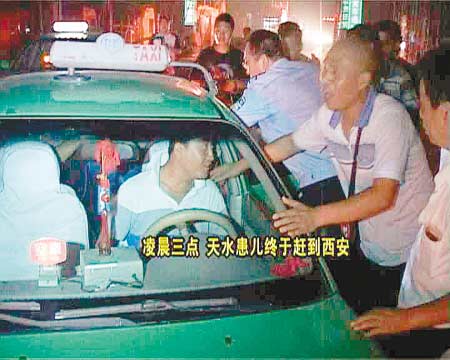 陜西電視臺FM99.9調(diào)頻廣播熱線接到一名來自甘肅天水的出租車司機(jī)鄭師傅的求助電話,他說自己車上拉了一名八九個月大的重癥嬰兒晶晶,由天水轉(zhuǎn)往西安西京醫(yī)院急救,因為途經(jīng)西寶高速路蔡家坡段發(fā)生車禍嚴(yán)重堵車,晶晶氧氣眼看就要用完,而且孩子出現(xiàn)高燒、抽搐等癥狀,情況比較緊急。
