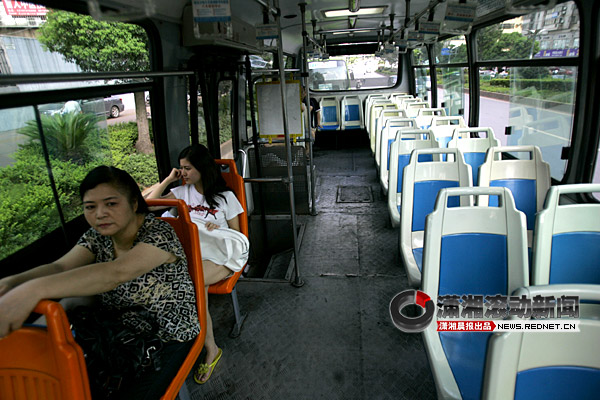 29日,長沙市最高溫達到36℃。各路公交車在日頭下跑,車上乘客也不見少。