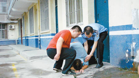 幼兒園園長兼司機朱雷剛走出羈押室,“撲通”一聲跪下,向涵涵和她的父母懺悔。記者王濤 實習生盧夢純 攝