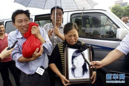 7月28日,在趙小亭的家鄉江蘇如皋,人們手持橫幅等待靈車到來。當日,載有女大學生趙小亭骨灰的靈車駛抵其家鄉江蘇如皋,近萬名市民自發迎接趙小亭魂歸故里。7月12日,年僅20歲的武漢大學2008級本科生趙小亭在貴州省貴定縣鄉村支教時被滾落的山石砸中,不幸遇難。7月27日,共青團中央、全國學聯、中國青年志愿者協會決定追授趙小亭“中國杰出青年志愿者”稱號。新華社發(孟大慶 攝)