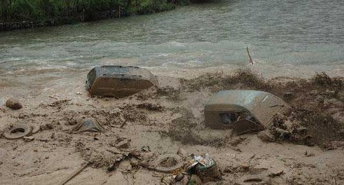 甘肅舟曲縣今晨突發(fā)特大泥石流災害,車輛沖入水中