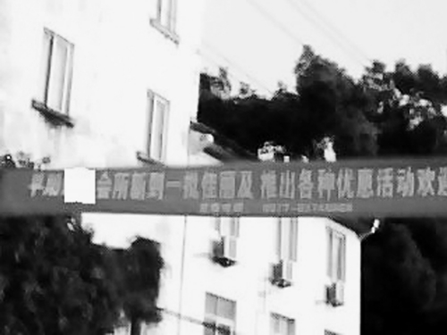 “旮旯人”發(fā)帖很簡單:一張比較模糊的照片顯示,橫幅掛在一幢黃色房子前面,也就大致能看出,上面寫著“平陽XX(照片處理過,遮去了名字)會所新到一批佳麗及推出各種優(yōu)惠活動歡迎……”等字樣。