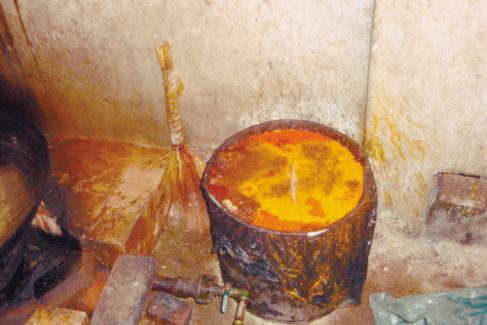 當(dāng)晚19時(shí),在造化街道后丁香村,執(zhí)法人員幾經(jīng)周折找到了這個(gè)黑熟食加工點(diǎn)。推開大門,記者就被這里的場(chǎng)景驚呆了。里面臭氣熏天,蒼蠅蚊子亂飛。封閉的平房里好像桑拿房一樣。房間墻壁都發(fā)了霉,一口大黑鍋敞著個(gè)蓋,里面燉著豬頭肉、豬蹄等,兩個(gè)工人用鏟子正在不停地?cái)噭?dòng)。污濁又潮濕的地面上隨意扔著肉骨頭。幾個(gè)水槽里存放著幾盆熟食原料。水是渾濁的,里面漂浮著不少死蒼蠅。