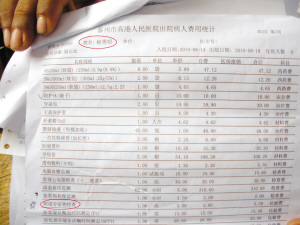 昨天下午,楊茂海在高港大泗鎮(zhèn)的家中,向記者出示了由高港人民醫(yī)院出具的賬單。指著其中一項“陰道分泌物檢查,1次,5元”,楊茂海情緒激動地稱,我爸爸是男的,“陰道分泌物檢查”從何而來。