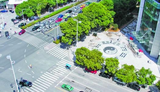 在溫州車站大道和溫迪路交叉口,記者找到了這個被網友熱議的超大八卦圖。八卦圖位于一幢在建的商務大廈的門前廣場上,記者目測,約有近百平方米。