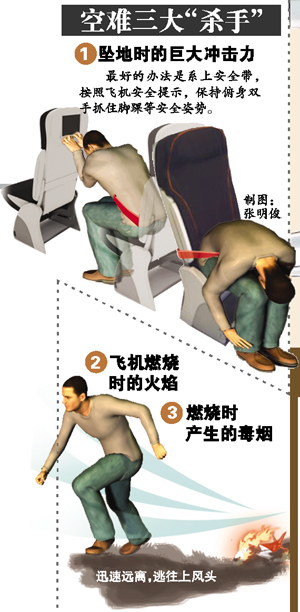 伊春空難發生后,乘客的逃生常識讓航空專家們表示憂心,從墜落到爆炸起火,往往只有幾分鐘的時間夠乘客逃生,此時,任何一個錯誤的動作都足以致命。