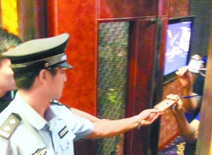 昨晚9時許,記者隨朝陽警方來到位于勁松橋南的一家KTV。KTV負(fù)責(zé)人告訴記者,該歌廳配有6名保安,60多名服務(wù)員,男女各半。這些女服務(wù)員專門負(fù)責(zé)為客人倒酒、點歌、陪唱,不收取小費,每月統(tǒng)一發(fā)工資,約在3000元左右。自今年5月全市在娛樂場所推行從業(yè)人員信息登記卡(即IC卡)管理制度以來,該歌廳包括服務(wù)員、保安、經(jīng)理、后勤、財務(wù)等,已經(jīng)有100余名從業(yè)人員辦理了IC卡。