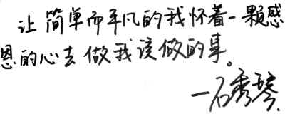 “我簡單而平凡,只是懷著一顆感恩的心去做我該做的事。”這是石秀琴的座右銘,也是她一直樂觀面對生活的精神支柱。