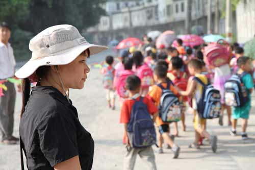 每當放學的時候,林老師就得站在校門口,護送學生放學