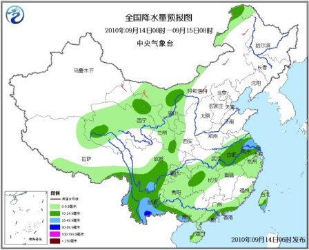 14日08時至15日08時,西藏南部、青海西部和北部、甘肅大部、寧夏、陜西西部、內蒙古西部和東北部、黑龍江西北部、江淮、江漢東部、江南中北部、華南大部以及西南地區大部有小到中雨或陣雨,其中,江蘇中南部、川西高原南部、云南西部和南部、廣西西南部、廣東珠江口地區、臺灣南部等地的部分地區有大雨;上述地區局部并伴有短時雷雨大風或冰雹等強對流天氣。新疆東部和南部、甘肅西部、內蒙古大部有4~6級風,新疆山口地區風力可達7~9級,南疆盆地的部分地區有揚沙或浮塵天氣。黃海南部、東海北部有4~5級東北風轉東南風;東海南部有4~6級西南風;臺灣以東洋面、南海中南部有4~6級東南風;臺灣以南海域、南海北部有4~6級偏東風。
