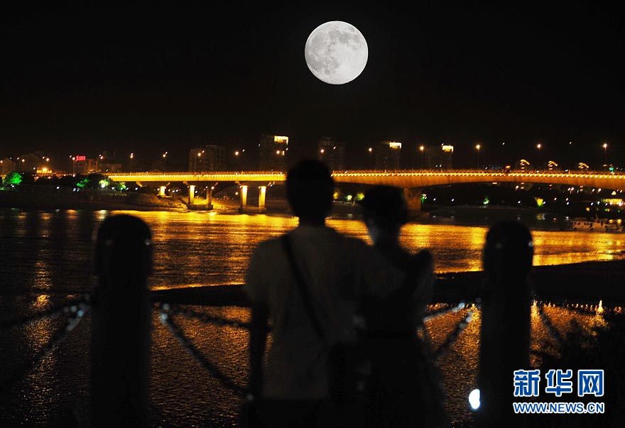 9月22日傍晚,福州一對情侶在欣賞圓月美景。今夜是團圓夜,不論你身在何方,身邊是否有家人陪伴,抬頭仰望明月之時,都能感受到月光傳遞的那份相思之情。 新華社記者李健攝