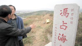10月1日12時(shí)許,記者在吉林市北山最高峰找到了馮占海將軍的墓地。此時(shí)馮占海將軍外孫張先生和妻子正在跟幾個(gè)工人交涉著。