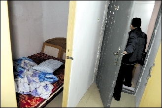 昨日,北京治安管理總隊(duì)和豐臺(tái)分局聯(lián)合掃黃行動(dòng)中,搗毀了豐臺(tái)火車站貨場(chǎng)底商的多處賣(mài)淫窩點(diǎn)。民警在介紹一處休閑中心內(nèi)的暗門(mén)。在一處柜子門(mén)的掩護(hù)下,內(nèi)部是另一間房間,并裝有防護(hù)門(mén),房間一角有逃跑窗戶。新京報(bào)記者 趙亢 攝