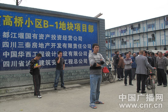 12日下午2點(diǎn),中國(guó)之聲記者到達(dá)都江堰市胥家鎮(zhèn)高橋村,在這里有多處正在建房的工地,分別由幾個(gè)開發(fā)商承包。11日事件發(fā)生的現(xiàn)場(chǎng)就是四川三秦房地產(chǎn)開發(fā)有限公司的工地。