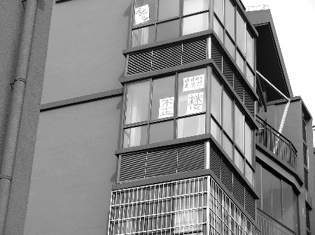 在與開發商協商未果后,業主在房屋的窗戶上懸掛起了“歪樓”的牌子。有人將此事文圖并茂地傳上網絡,被人稱為信陽版本的“樓歪歪”事件。