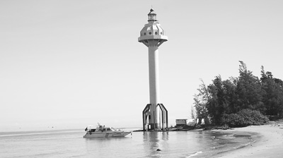 由于羅斗沙島位于瓊州海峽重要航道上,為確保來往船只安全,上世紀90年代中期,廣東省航道管理局在羅斗沙島修建了一座高達50米的燈塔,該燈塔遂成羅斗沙島標志,但10多年過去了,原本離岸線70米遠的燈塔,現在已經孤零零矗立在了海邊,而原本深埋在沙面之下的燈塔底基已經外露,裸露部分足有3米。