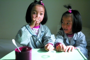 昨日,在病房內,8歲的小姐妹雖然有些靦腆,但還是露出微笑。大大的眼睛、白皙的皮膚,很難看出是腦癱患兒。媽媽吳偉說:“她們的進步是我堅持8年的動力。”