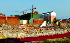 9月16日,山東諸城土墻社區部分宅基地已經拆除,遠處為村民集中居住的樓房正在建設。本報記者 涂重航 攝