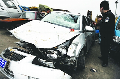 出事車輛已撞得面目全非。郭一鵬 吳勝 攝