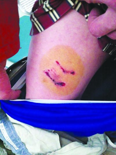 多位市民腿部和手臂被咬得血跡斑斑。吳勝 裴睿 攝