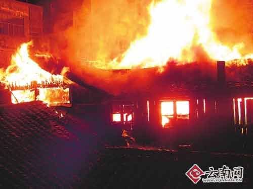 起火點(diǎn)位于騰沖商業(yè)區(qū)主大街內(nèi),四周毗鄰建筑密集,且此時(shí)正處深夜,大量居民還未逃離現(xiàn)場(chǎng),濃煙滾滾的大火已將整個(gè)四合院吞噬,且火勢(shì)已逐步向周邊住宅樓蔓延。