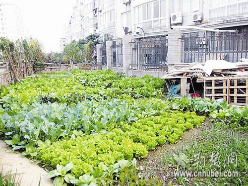 連日來,記者在三鎮走訪了鵬程花園、得勝橋馬道門、匯豐家園、臺北二村等多個新老小區,均發現有不少市民在小區空地或樓頂種菜的現象。