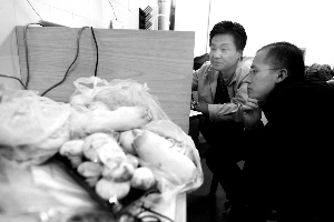 昨日(8日)下午,北京農學院“農業部都市農業(北方)重點開放實驗室”,中國政法大學的研究生帶著從六區17個超市、市場購買的各種蘑菇前來檢測。本報記者浦峰攝