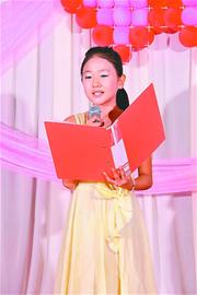 “下面有請(qǐng)新郎官向前一步走,哇!這么高啊,都快趕上姚明了!看他長(zhǎng)得,又高、又黑、又亮,儀表堂堂啊……”在一對(duì)新人的婚禮現(xiàn)場(chǎng),來賓被一個(gè)可愛的女孩逗得哈哈大笑。雖然個(gè)頭僅到新郎官的腰部,她卻是這場(chǎng)婚禮的關(guān)鍵人物——— 司儀。