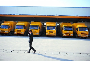 一家快遞公司,每天300輛這樣的貨車奔跑在路上,這幾天還是忙不過來。攝影記者 胡元勇