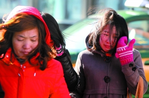 因低溫,王府井等多處旅游點(diǎn)客流量降低。前天,王府井附近的游客在寒風(fēng)中行走。本報(bào)記者 周曉東 攝