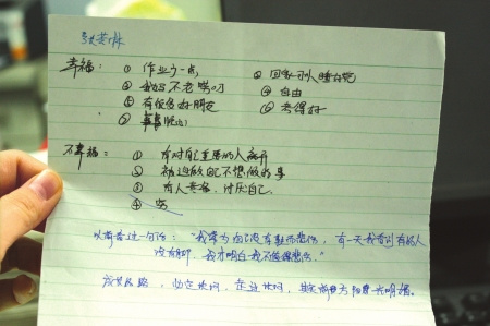 中學生寫下自己的幸與不幸(圖片來源:華西都市報)