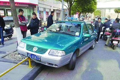 沖上人行道的出租車。張斌 攝