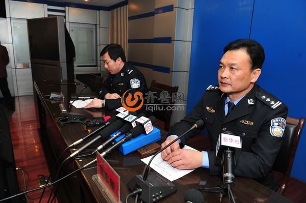 2011年1月5日,泰安市公安局召開第二次新聞發布會通報了1.04持槍殺人案犧牲民警及有關人員基本情況。圖為發布會現場。(攝影 張曉博)