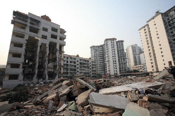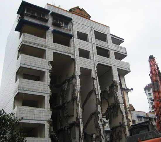 住宅樓被強拆變空中樓閣 頂樓人家尚未搬遷(圖)