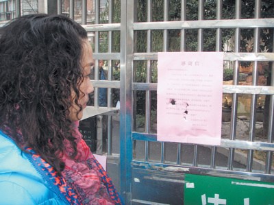 喻女士在小區門口貼出這封感謝信,感謝兩位機智救人的好鄰居。李卓攝